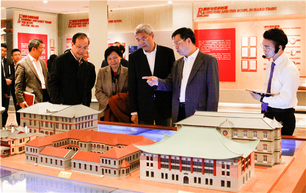 尹弘一行先后参观了校史馆、李昌钰法庭科学博物馆、模拟法庭、实验室等,详细了解了学校的办学历程和校史校情,仔细察看了相关办学资料、设施、场地、环境。尹弘指出,华政拥有悠久的办学历史和优良的办学传统,应该更好地抓住新时代法治建设发展的重要战略机遇,坚持正确办学方向,厚植发展基础,深化内涵发展,整合办学资源,改善办学条件,实现新的跨越发展。