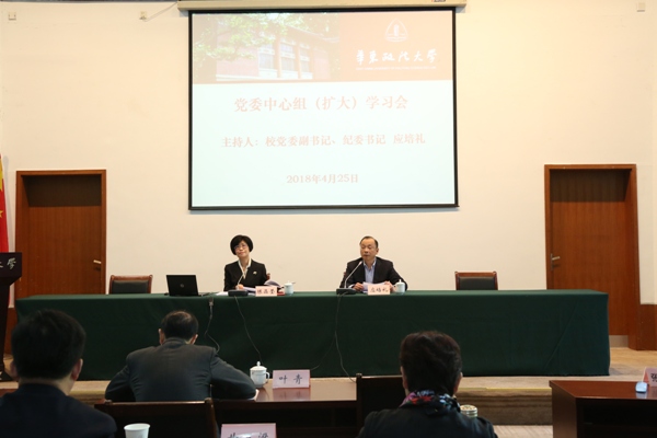 4月25日,我校召开党委中心组(扩大)学习会,副校长、第十三届全国人大代表陈晶莹作“深入学习宪法,贯彻两会精神”专题报告。校党委副书记、校长叶青,校党委副书记、纪委书记应培礼,副校长张明军、周立志,校党委委员、纪委委员、民主党派负责人、校工会委员会委员、中层干部、辅导员参加会议。会议由应培礼主持。