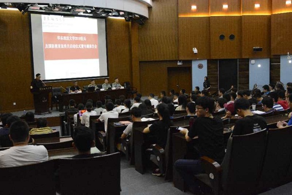 5月2日下午,我校2018年征兵及国防教育宣传月启动仪式在明珠楼报告厅举行。长宁区人民武装部政委宋怀金、副部长邹国华受邀与学工部(处)副部(处)长、武装部副部长闻庆礼及师生代表、退伍兵代表、今年入伍报名同学等一起参与活动。