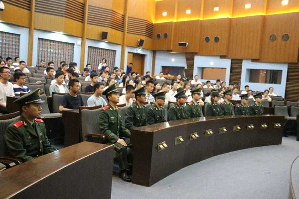宋怀金大校以《更多的我们成为“他们”,更有力的“他们”保护我们》为题,结合自身成长经历,并穿插叙利亚局势、宣传片《厉害了,我的军》等视频内容,为在场师生提供了一场精彩的征兵动员报告,现场反响热烈。