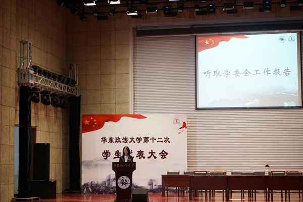 第十一届学生会主席钱彧妮作第十一届学生委员会工作报告。报告全面总结了过去一年学生会的各项工作和所取得的成绩,分析了工作中存在的问题与不足,提出了学生会未来的发展方向与工作思路。