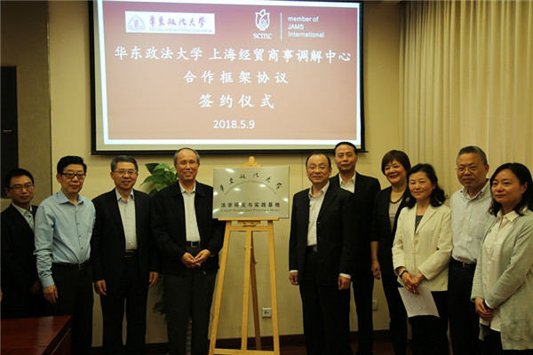 5月9日下午,我校与上海经贸商事调解中心合作框架协议签约仪式在该中心举行。上海现代服务业联合会会长、上海经贸商事调解中心名誉主任周禹鹏,上海现代服务业联合会副会长、调解中心管委会主任巢卫林,调解中心主任张巍,调解中心副主任兼秘书长李海歌,我校党委副书记、纪委书记应培礼,科研处副处长卢勤忠,法律硕士教育中心副主任陈颐,继续教育学院副院长左丽珺,社会协同合作处副处长王美丽出席会议。会议由李海歌主持。