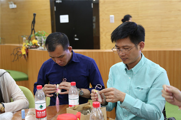 来自韩国济州大学的李贤贞同学说“韩国也有类似的节日,不过今天才知道中国的端午节除了吃粽子还有这么多意义,回国后我也要教家人们包粽子、做香囊,也让他们体验一下中国传统文化的魅力。”