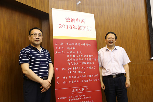 5月16日晚,中国法学会经济法研究会副会长、中国法学会商法研究会副会长、上海市法学会经济法研究会会长、上海市法学会商法研究会会长、国务院学位委员会法学学科评议组成员、博士生导师顾功耘教授在松江校区明镜楼尚法厅主讲本学期“法治中国”课程第四讲,主题为“市场经济与法律规制”,由党委教师工作部副部长(主持工作)、马克思主义学院副院长赵庆寺教授主持。