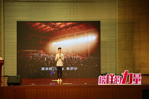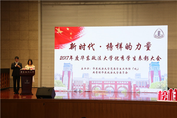 表彰大会分为爱国、励志、求真、力行四个篇章,通过优秀学生代表分享成长故事、《“新时代·榜样的力量”——2017年优秀学生工作回顾》视频展示等方式,表彰了我校学生2017年在学习、工作和各项活动中取得的突出成绩。