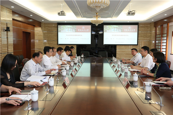 5月28日下午,上海市纪委副书记、市监察委副主任戴骅,市纪委常委陶泓,市纪委监委驻市教卫党委纪检监察组组长杨永和,市纪委监委组织部副部长姜樑,市纪委监委四室副主任朱勇祥等一行来校开展调研工作。校党委书记曹文泽,党委副书记、校长叶青,党委副书记、纪委书记应培礼,党委副书记、副校长闵辉,党委副书记唐波,党校办主任曲玉梁,纪委副书记、监察室主任赵云高,纪委办公室主任、监察室副主任黄紫红,纪委纪检员孙永生等参加座谈会。会议由戴骅主持。