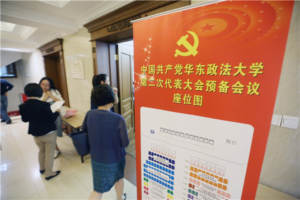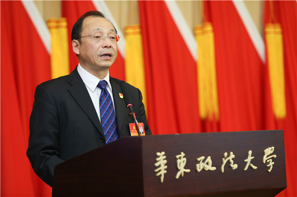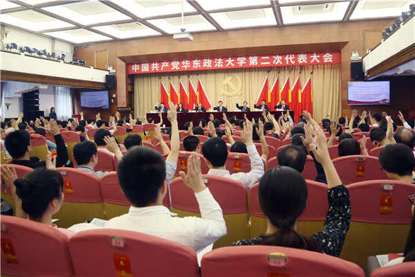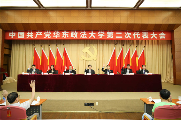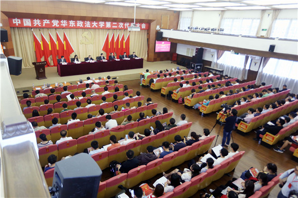 5月30日,中国共产党华东政法大学第二次代表大会预备会议在长宁校区交谊楼举行。校党委书记曹文泽,党委副书记、校长叶青,党委副书记、纪委书记应培礼,党委副书记、副校长闵辉,党委副书记唐波,副校长张明军、周立志和全体党代表出席会议。会议由闵辉主持。