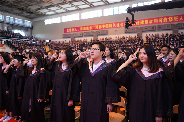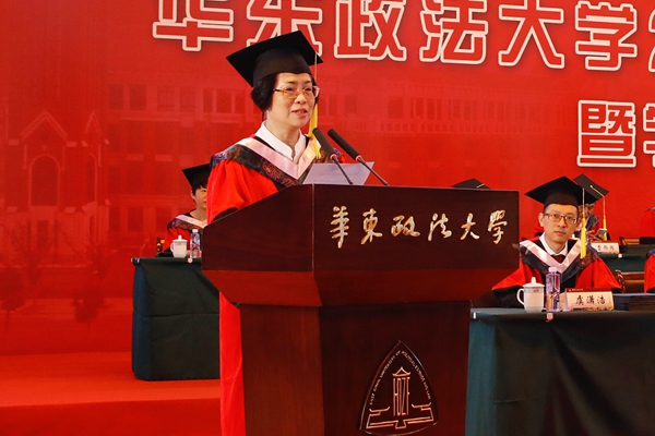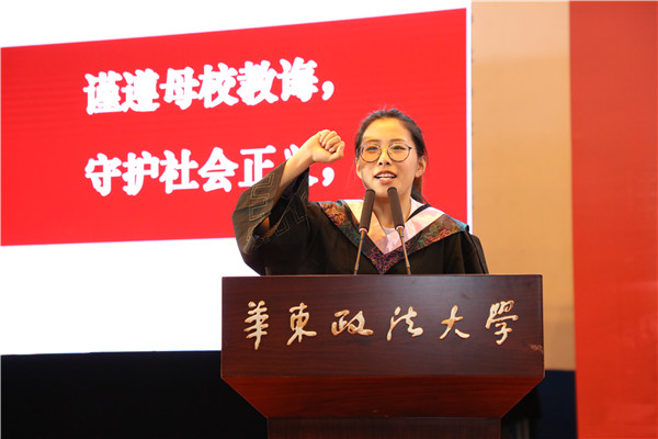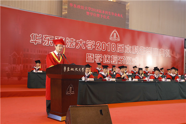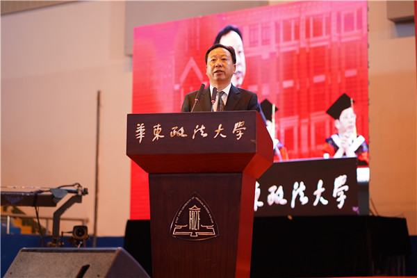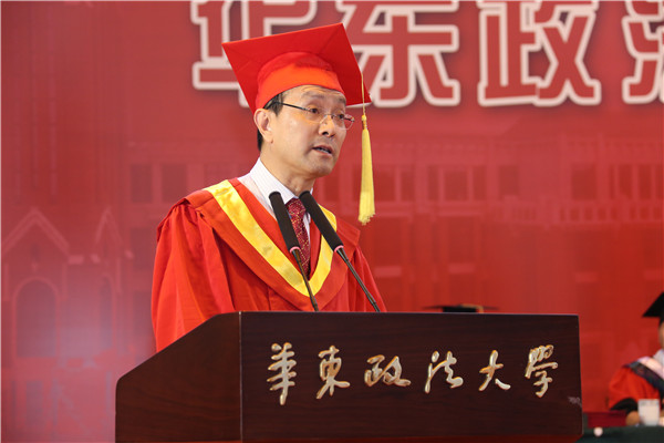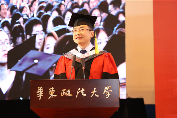 他认为,从这里走出去的华政人,不丢弃原则,更加敬畏规则。希望同学们走出校门后,不要丢掉法律和道德的底线,在创造美好事业和幸福生活的过程中,不做匆匆一笑的过客,不当袖手旁观的看客,更不能变成为虎作伥的掮客;要让追求理想的热情不被一时一事的冷漠所扑灭,正直勇敢的灵魂不被一念之差所役使,高尚的职业操守不被一时之欲所攻破,永葆华政人的底色。