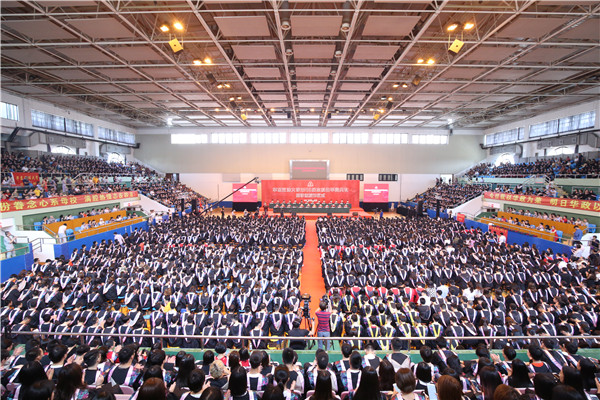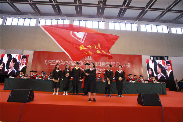 6月13日上午,我校2018届本科生毕业典礼暨学位授予仪式在松江校区富田体育馆举行。校党委书记曹文泽,党委副书记、校长叶青,党委副书记、纪委书记应培礼,党委副书记、副校长闵辉,党委副书记唐波,副校长陈晶莹,党委常委、副校长张明军、周立志,党委常委曲玉梁、戴莹、虞潇浩、杨忠孝,校友代表、锦天城律师事务所高级合伙人沈国权,以及学院和职能部门负责人、教师代表、家长代表和3000多名毕业生出席典礼。典礼由闵辉主持。