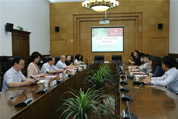 6月22日,2018年度“朱颖校友留学基金”资助表彰仪式在长宁校区交谊楼举行。中伦律师事务所合伙人、“朱颖校友留学基金”设立人朱颖校友,我校党委副书记、纪委书记、校教育发展基金会副理事长应培礼,社会协同合作处处长、校教育发展基金会秘书长邹荣,校友办主任吴高升和社会协同合作处相关人员出席会议。会议由邹荣主持。