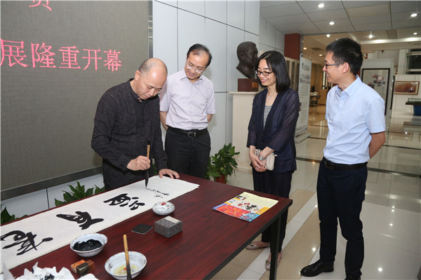 为弘扬中华传统文化,营造浓郁的华政校园文化氛围,在彩绘墨香之中领略书画艺术的独特魅力,6月20日,“陈志宏书画展”在我校松江图书馆开幕,展出将持续至学期末。校党委副书记、校长叶青,党委副书记唐波,图书馆馆长朱俊、图书馆党总支书记王洁和热爱书画艺术的部分师生代表出席开幕仪式。开幕式由党委宣传部部长虞潇浩主持。