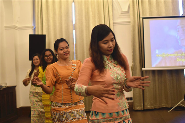 随后联欢会文艺表演阶段,缅甸籍毕业生Khin Nwe Thi等五位同学身着传统服饰带给全体师生一段婀娜多姿的缅甸舞蹈;尼泊尔籍毕业生Kamala身着鲜艳纱丽,热情动感的舞步感染带动全场师生一起摇摆;坦桑尼亚籍毕业生Kitanda高歌的《爱之歌》悠扬婉转;张皎老师的一曲《好运来》高亢嘹亮,把最美好的祝福送给各位同学。联欢会在师生们一个个精彩的文艺表演和由日常学习生活照片串联成的视频中不断推向高潮。