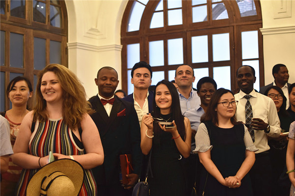 6月21日下午,2018年度国际学生毕业联欢会在长宁校区举行。国际交流处处长夏菲、副处长赖锦盛,教师代表和多家实习单位代表以及来自二十多个国家的近五十名毕业生共聚一堂、欢庆毕业。