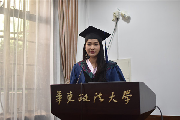 优秀学员代表和律所带教老师代表分别发言。老挝籍学生LUANGCHANDAVONG CHANDALANY、坦桑尼亚籍学生MWAKATOBE LUPYANA THOMAS和缅甸籍学生Khin Nwe Thi作为优秀实习学员代表在发言中对学校、静安区司法局和14家律师事务所表示感谢,在中国顶级律所六周的实习经历,使他们不仅能够在教室里学习中国法律的理论,还能够真正接触法律实务,大大加深了自己对中国法律制度的了解。随后,律师事务所代表在发言中对学员们表示祝贺,回顾了带教律师与各位学员一起度过的六周时间和建立起的友谊,并期待获得学员们的反馈,使该项目得到进一步优化。