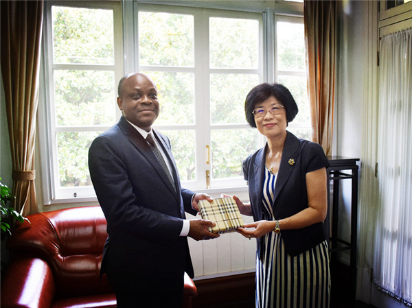 副校长陈晶莹与非洲统一商法组织秘书长合影