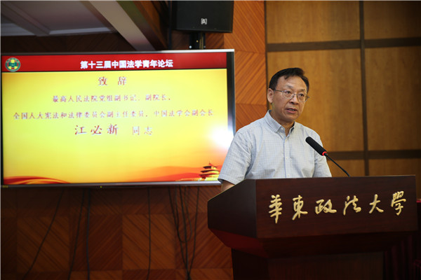 最高人民法院党组成员、副院长姜伟,中国法学会副会长鲍绍坤、张文显、王其江、徐显明、郎胜、朱孝清、任海泉,上海市高级人民法院院长刘晓云,上海市人民检察院检察长张本才,上海市法学会党组书记崔亚东,我校党委副书记、校长叶青等出席论坛。