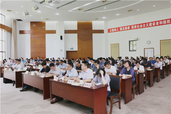 叶青代表学校党政和校党委书记曹文泽同志,向在暑假期间坚守岗位,和为学校事业发展付出辛勤努力的全体教职员工表示衷心感谢。他指出,今年6月中共中央政治局就加强党的政治建设举行第六次集体学习时,习近平总书记就加强党的政治建设,提出了坚持正确政治方向、坚持党的政治领导、夯实政治根基、涵养政治生态、防范政治风险、永葆政治本色、提高政治能力等七方面明确要求。全体党员干部要注意对标看齐,始终把党的政治建设摆在首位,加强政治学习,增强“四个意识”,严肃政治生活,不断提高政治能力,将加强政治建设同促进学校改革发展紧密联系起来,以全面加强政治建设来引领、带动其他建设,更好推动我校各项事业和国家法治事业的稳步发展。