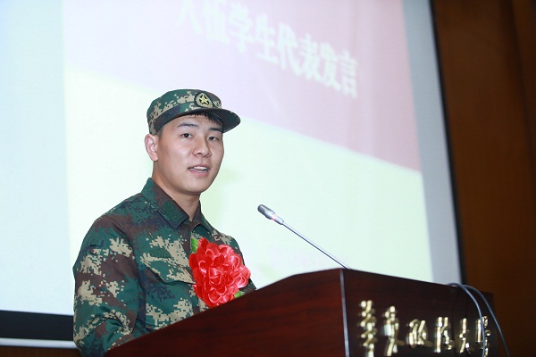 学工部(处)副部(处)长、武装部副部长闻庆礼宣读定兵名单,武装部办公室主任沈佳作2018年征兵工作总结。政治学与公共管理学院应届毕业生刘岩、国际金融法律学院朱逸凡家长分别作为学生代表和家长代表作了交流发言。