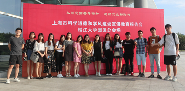 9月19日下午,由上海市科学技术协会和上海市教育委员会共同主办的“2018年上海市科学道德和学风建设宣讲教育报告会”在上海科学会堂国际会议厅举行。我校研究生代表团队在东华大学分会场通过视频直播的方式聆听报告。