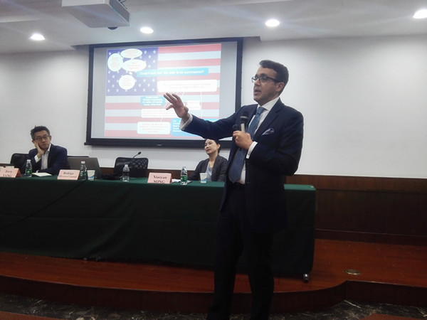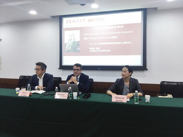 本次讲座采用“三人座谈”的形式。伦敦玛丽女王大学银行与金融法方向负责人、我校国际法学院“东方学者”讲座教授Rodrigo Olivares-Caminal担任讲座协调人,与杨大志(Terry Yang)先生、上海财经大学法学院院长宋晓燕教授共同就“银行风险处理机制”开展讨论。伦敦玛丽女王大学Ioannis Kokkoris教授及我校以国际法专业为主体的研究生参与了讲座交流,取得了良好的反响。