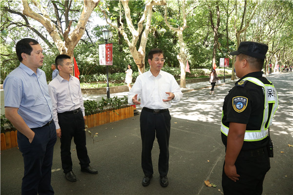 为切实做好学校各项安全稳定工作,10月1日上午,校党委书记郭为禄、副校长周立志,以及党校办、宣传部、学生处、后勤管理处、保卫处等各职能部门负责同志分别对我校松江和长宁两个校区进行了工作检查。