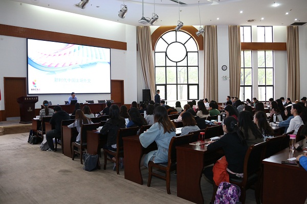 宣讲会上,黄昳扬以“新时代中国主场外交”为主题,从杭州G20峰会和厦门金砖会晤切入,结合自身经历全方位介绍了主场外交活动的筹划、举办过程和相关重要细节,并分享了自己多年从事外交工作的感受和经验,黄昳扬还就学生现场提出的关于“法律专业人才在一带一路建设中的作用”等问题作了解答。