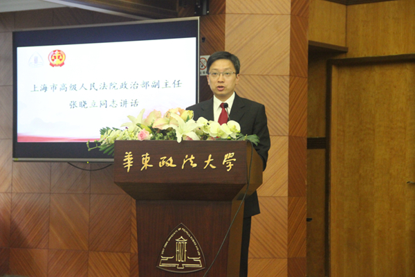 张晓立在讲话中指出,法律助理项目作为上海法院落实国家教育部、市政府关于“产学研联合培养研究生”计划的重要举措和加强司法战线后备人才发掘、培养、储备的重要平台,经过十三年的运作和经验积累,法律助理项目规模从小到大,机制从探索到成熟,实习区域由上海市扩展到上海、江苏、浙江、安徽等地区,实习对象由研究生拓展到本科生和研究生,法律助理项目已经相当成熟和完善。他充分肯定了本期法律助理项目的成效,表示今后将继续深化与我校交流合作、携手共进,努力培养出更多更优秀的法律人才,为上海的经济和社会发展提供良好的司法保障。