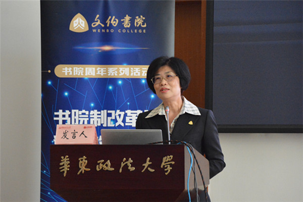 陈晶莹代表学校向校内外专家的到来表示热烈欢迎,并介绍了学校的基本情况以及开展书院制教育改革的背景初衷、培养目标、规划设计、举措办法和实践情况。她指出,华政一直以来十分重视建设健全通识课程体系,并将其定位为书院制教育改革的核心内容,在一年多的书院制教育改革实践过程中,学校在“培养品牌教师、打造品牌课程、凝聚品牌教学团队”等具体工作中取得了一定成绩,积累了一定经验,但书院制教育改革和通识教育创新发展之路依然任重道远。她强调,要继续发挥书院制教育改革作为通识教育创新发展推动者和实践者的重要作用,与兄弟学校共同探索、凝练书院制教育改革、通识教育创新发展的方法规律,开展全方位、立体化的交流,不断丰富通识教育形式,深化通识教育内涵,提升通识教育层次,助力通识教育理论、实践发展,为高校人才培养提供智力支持。
