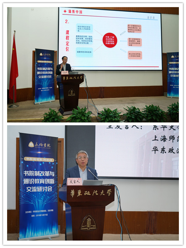 10月19日,教务处与文伯书院合办的“书院制改革与通识教育创新”交流研讨会在尚法厅举行。副校长陈晶莹,来自复旦大学、华东师范大学、东华大学、苏州大学、上海师范大学、上海对外经贸大学、南京审计大学、江苏师范大学、上海立信会计金融学院、温州大学、上海政法学院从事书院制教育改革、通识教育研究和实践的专家,华东政法大学附属松江实验学校、校内书院制教育改革相关部门的领导、教师参加交流研讨会。魏文伯先生子女魏晓路、魏晓台特别出席研讨会开幕式。会议由教务处处长王月明,发展规划处处长、文伯书院院长杨忠孝,文伯书院党总支书记兼副院长李健共同主持。