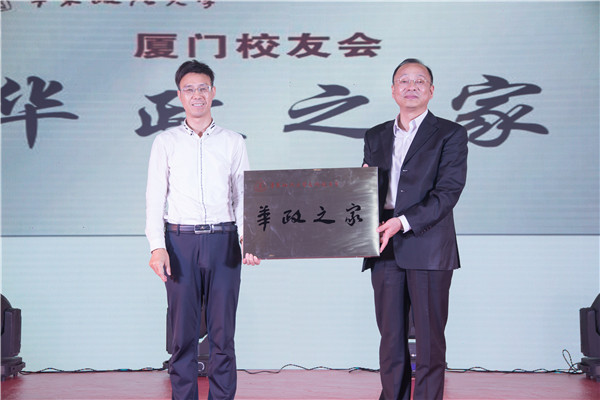 厦门校友会会长陈跃贡汇报了近年来厦门校友会工作情况。郭为禄为厦门校友会会长、副会长和监事长颁发聘书,应培礼和陈跃贡为“华政校友之家”揭牌。
