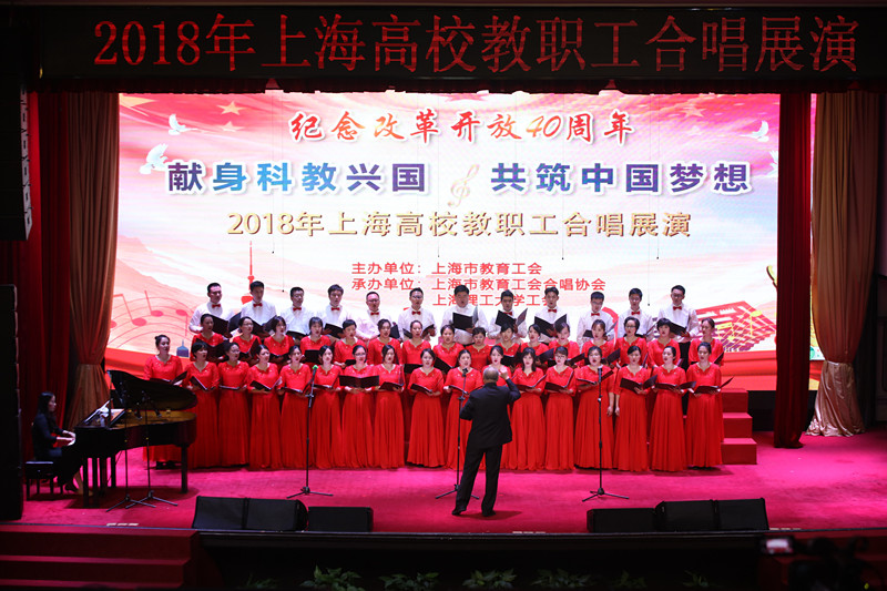 10月19日,我校“风华政茂”教职工合唱团参加了在上海理工大学举行的“纪念改革开放40周年合唱展演”活动。本次活动由上海市教育工会主办,上海市教育工会合唱协会、上海理工大学承办,共有来自上海市的19支高校合唱团近千名教师参与演出。