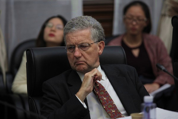 会谈结束后,英国法官代表团参加了我校国际法学院、国际法研究中心承办的“中英金融法圆桌论坛”。来自凯易律师事务所香港办公室、高伟绅律师事务所香港办公室、海问律师事务所等机构的律师代表,我校国际法学院党委书记寿新宝及部分教师、学生、校友也一同参加了论坛。