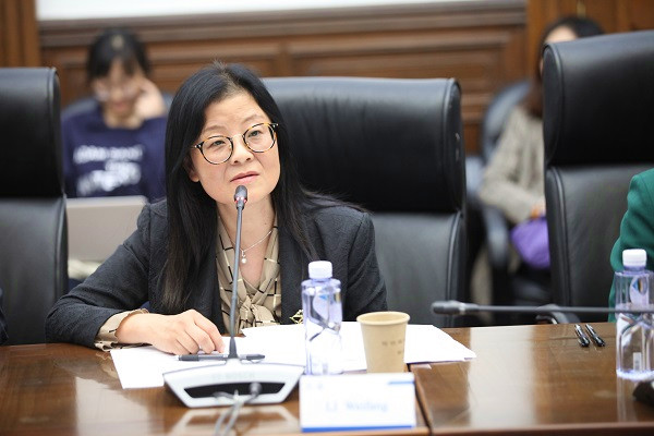 陈晶莹代表学校致欢迎辞。她指出,英国法官代表团第三次来我校交流,国际法学院老、中、青三代教师、本硕博学生代表齐聚一堂,与英方代表探讨金融法律问题,是传承与开放的表现,希望这种交流能够机制化。盛永强在致辞中指出,“建市场、聚机构、迎环境”是新时代金融环境的建设要求,本次圆桌论坛很有意义。