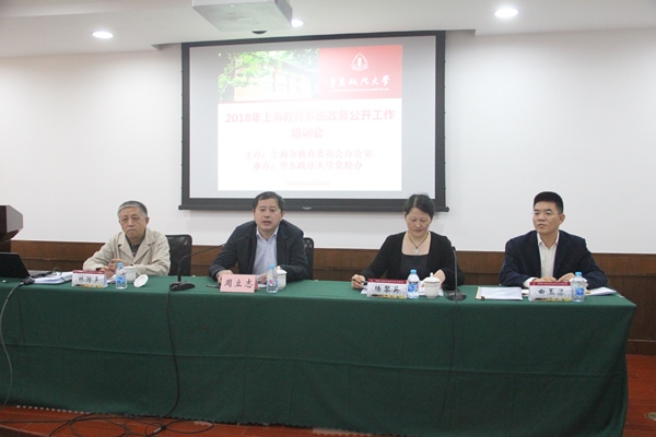 由上海市教育委员会办公室主办、我校承办的2018年上海教育系统政务公开工作培训会于10月30日在我校召开。来自全市61所高校和16个区教育局的政务公开工作人员参加培训。我校副校长周立志、党校办主任曲玉梁、市教委原副秘书长林洵多出席开班仪式,仪式由上海市教委办公室副主任陆黎英主持。