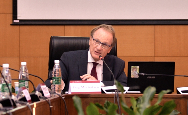 作为一名法学史专家,迈克尔森院长此行还在华谊楼圆桌会议室举办讲座,就北欧社会的法律与法学史展开介绍,并热情回答了我校学子的问题。他表示,从讲座之中感受到了我校学子对北欧法律的兴趣和研究热情,对奥斯陆大学同华政的交流合作表示期待。