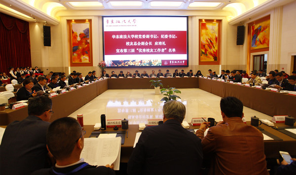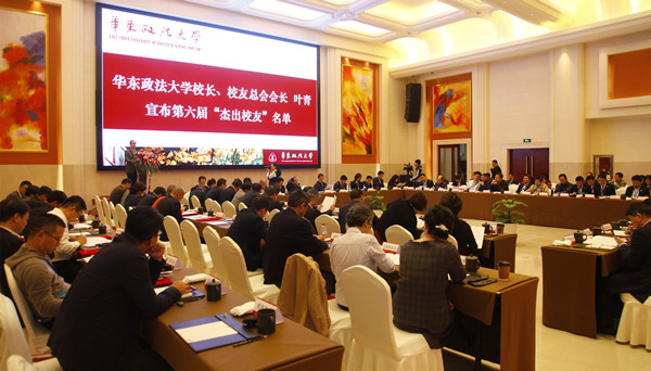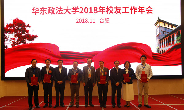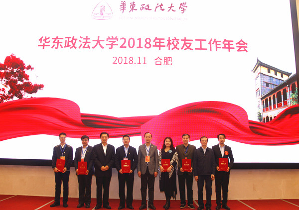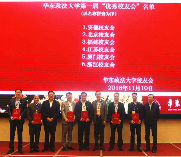 为表彰激励在各条战线为国家经济社会发展,为学校建设和校友发展作出突出贡献的校友和校友会,校友总会开展了华东政法大学第一届“优秀校友会”、第三届“优秀校友工作者”和第六届“杰出校友”评选表彰工作。叶青、杜志淳、王迎春为安徽、北京、福建、江苏、厦门、浙江6个“优秀校友会”、吕莹等48名“优秀校友工作者”和赵志刚等50名“杰出校友”颁发了荣誉证书。