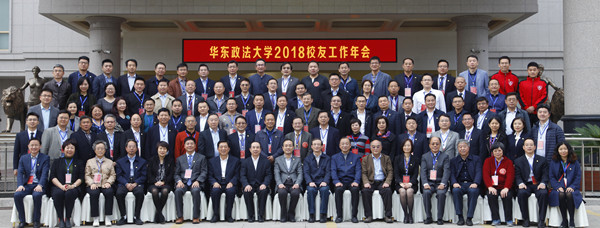 11月10日, 我校2018年校友工作年会暨“强化法治保障、助力生态优先绿色发展”高峰论坛在合肥举行,本次年会由安徽校友会承办。校党委副书记、校长、校友总会会长叶青,校党委副书记、纪委书记、校友总会副会长应培礼,原校党委书记、原校友总会会长杜志淳,社会协同合作处处长邹荣,学生处处长王戎,研究生教育院党委书记刘丹华,校友办主任吴高升,社会协同合作处副处长王美丽,安徽省人大常委会常委、内司委主任石德和,安徽省公安厅原纪委书记、安徽省纪委驻省公安厅纪检组组长王迎春,安徽省农村信用社联合社副主任孙斌,安徽省宣城市市委副书记、市长张冬云,安徽省人民检察院党组成员、副检察长陶芳德等来自安徽和海内外40多个校友会的100多位校友代表出席会议。会议由应培礼主持。