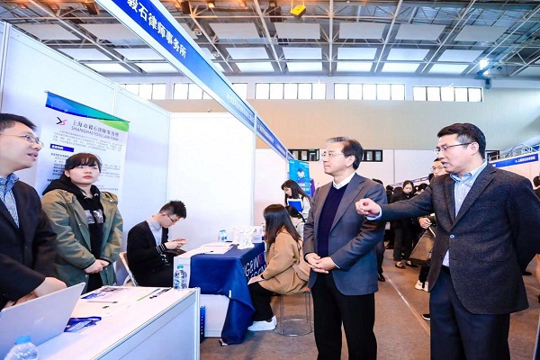 郭为禄、闵辉一行与上海市毅石律师事务所主任、优秀校友石毅进行亲切交谈,并向中豪律师集团(上海)事务所、崇明区人力资源和社会保障局、福建厦门象屿集团有限公司、浙江海泰律师事务所等多家用人单位现场了解招聘需求及其对我校毕业生的综合评价,并随机询问了部分毕业生参加招聘会的感受、求职进展等情况。