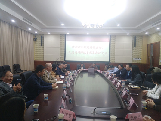 11月3日上午,中国民主建国会华政委员会与浙江湖州市委员会在长宁校区图书馆会议室举行共建活动。民建华政主委洪冬英、原主委李秀清以及民建华政委员会多位委员参加研讨共建活动。民建湖州市委秘书长吕丽、办公室主任沈金清、民建湖州师院支部主委谢舟、民建湖州科技支部副主委潘诚伟等一行15人,与我校民建委员会共同研讨。