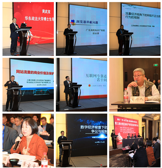 与会专家学者围绕自贸区互联网产业和文化创意产业知识产权司法保护需求这一主题分成“流量经济视角下的网络知识产权司法保护”“数据经济视角下的网络知识产权司法保护”“平台经济视角下的网络知识产权司法保护”“生态经济视角下的网络知识产权司法保护”四个专题展开讨论,大家踊跃发言、积极互动,现场气氛十分热烈。