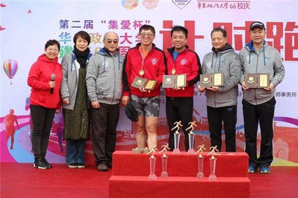 11月18日,我校66周年校庆之际,适逢上海国际马拉松鸣枪开跑,我校第二届“校庆公益跑”(66分钟计时赛)暨华政校友会跑团俱乐部成立仪式在松江校区举行。社会协同合作处处长邹荣,工会常务副主席邵军,学生处处长王戎,校友办主任吴高升,陈之恺、陈慧谷、王敏超、吴美华、吴蒙、黄富章校友等120位选手参加活动,向华政66周年校庆献礼。