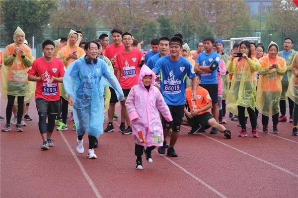 开幕式上,伴随着《假如让我行走三天》的背景音乐,第一届“校庆公益跑”男女冠军得主胡兆洋和王兰凤扶助一位“杜氏肌营养不良儿童罕见病(DMD)”患者小朋友绕操场慢跑一周。对于普通人来说迈开腿便可进行的跑步,对这位年仅九岁的小朋友来说却已是一种奢侈。不久的将来,他就只能长期与轮椅为伴。这样揪心又暖心的一幕让在场的人无不为之动容。“关爱DMD,爱不停步”成为这次校庆跑的公益主题。