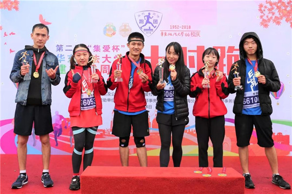 经过66分钟的意志和体能挑战,最终胡兆洋、朱子杰、李柄宽分获男子前三名,王兰凤、刘宁、秦彦琳分获女子前三名,分别获得冠亚季军奖杯和3000、2000、1000元奖金。26位男生勇闯66分钟跑13公里大关、17位女生勇闯66分钟跑11公里大关,分别获得“明珠之光”银质戒指一枚。组委会为参赛选手精心设计了多款赛事服、完赛服、奖杯、奖牌、会徽、戒指和赛事包等一系列具有华政元素的赛事纪念品。