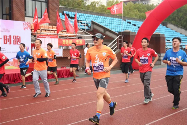 发令枪响,包括老师、校友、在校生在内的120名选手冲了出去,开始这场他们期待已久、可以充分体会跑者意志力和拳拳之心的66分钟计时赛。在激昂而欢快的校歌中,选手们以跑步的方式为母校庆生,在这个他们度过了青葱岁月、奠定人生辉煌的地方再次洒下汗水,绕场一圈又一圈,表达对母校的赤诚和挚爱。
