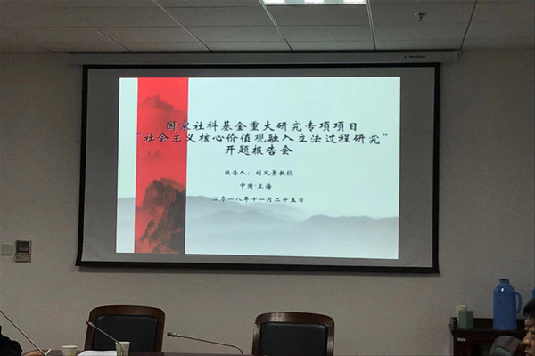 11月25日下午,由我校政治学与公共管理学院刘风景教授担任首席专家的国家社科基金重大专项“社会主义核心价值观融入立法过程研究”在松江校区明实楼开题。
