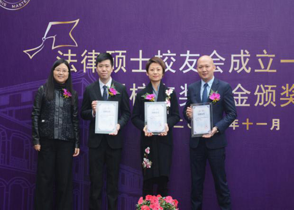 我校作为教育部首批法律硕士培养单位,走过了22个年头。22年来为国家培养了数千名高端法律人才,他们成就斐然,在取得傲人成就的同时,也为法律硕士教育中心人才培养、学术研究、就业促进等方面提供了无私帮助。从3年前设立咏絮奖学金,到去年校友会成立仪式上设立鸿方智慧奖学金,再到如今设立普世奖学金,无不体现校友对母校、对法硕中心、对法硕中心学弟学妹的关怀,无不展现了校友爱校荣校的使命感。当一份份获奖证书交到获奖学生手中时,也将这份使命感传承。