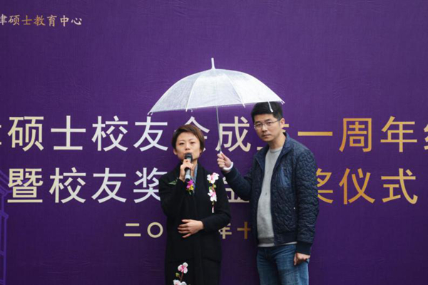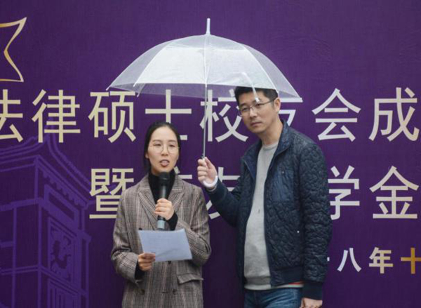 咏絮奖学金设立方代表朱蓓律师传达了咏絮奖学金设立者张亮律师对校友会成立一周年的祝贺。她表示,咏絮奖学金设立的初衷就是希望众多法硕学子能够找到前进的方向。在咏絮奖学金面试时,张亮律师从个人经验出发,结合每位学生的个人偏好,为每一位参与面试的学生提供就业建议。今后,张亮律师也会继续支持学校发展,为法硕学子提供实践平台。学校有实践需求,公司也会大力支持。