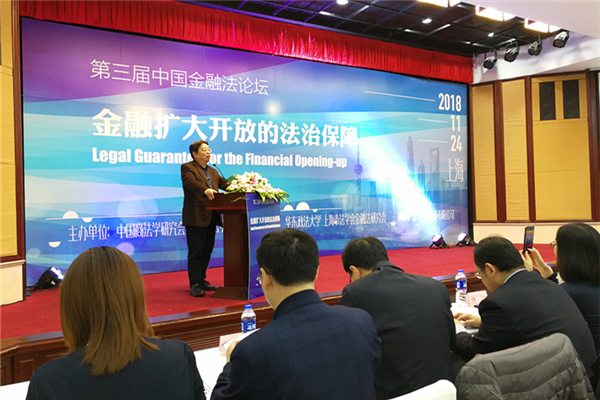 11月24日,由中国商法学研究会和上海市法学会主办、我校等承办、汇付天下有限公司协办的第三届中国金融法论坛举行。中国商法学研究会会长赵旭东教授、上海市法学会专职副会长施伟东、我校党委书记郭为禄教授等出席论坛并致辞。校党委副书记唐波教授,我校贺小勇教授、方乐华教授分别作主旨演讲,吴弘教授主持开幕式和大会发言,钱玉林、伍坚、孙宏涛等分别主持和评议分论坛,顾功耘教授致闭幕词。