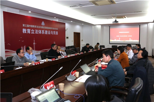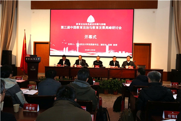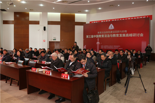 12月9日,在教育部政策法规司指导下,由中国教育发展战略学会、上海市教育委员会和我校联合主办的第三届“中国教育法治与教育发展高峰研讨会”在我校召开。会议围绕“教育法治体系建设回顾与前瞻”主题,就教育立法体系建设与完善、教育执法体制建设与完善、教育法治与大学治理、青少年法育理论与实务等议题充分展开,吸引了全国各地教育学、法学、司法审判等相关领域30余位重量级专家参与。教育部政策法规司副司长王大泉、巡视员王家勤,上海市教委主任陆靖,中国教育法治与教育发展高峰研讨会主要发起人、中国教育发展战略学会会长孙霄兵,我校党委书记郭为禄,党委副书记、校长叶青和党委副书记、副校长闵辉出席会议。会议开幕式由闵辉主持。