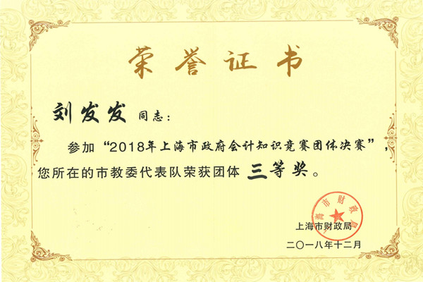 为加强政府会计制度的学习宣传工作,促进本市行政事业单位高度重视、认真学习、准确理解新制度,检验提升培训学习成效,上海市财政局日前组织开展了2018年本市政府会计知识竞赛,全市8000多名会计人员参加竞赛。我校财务处刘发发老师所在的市教委代表队